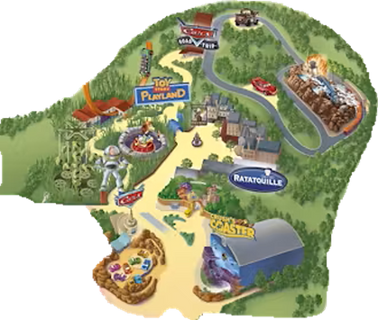 Pas moins de 5 Lands vous plongent au coeur de l'action : Front Lot et ses décors Hollywoodiens, Production Courtyard qui offre une vision d'Hollywood dans les années 30, Avengers Campus qui donne la possibilité de prêter mains fortes aux super-héros de l'univers Marvel , Toon Studio qui rend hommage aux classiques Disney et Worlds of Pixar réduisant les visiteurs à la taille d'un jouet, d'un rat, les incitant à voyager sur la route 66 ou au fond de l'océan !